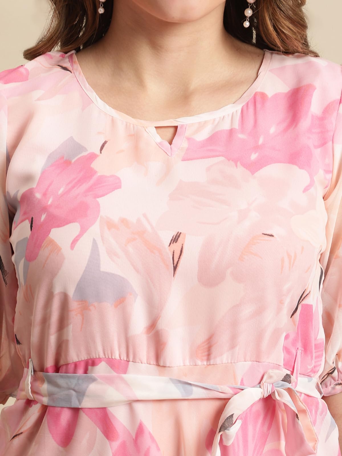 • Gown Dress Fabric: Georgette || Kurta Set Color :- Rose Pink|| Georgette Fabric: Crafted from a premium Georgette, this one-piece dress for women features a stylish floral print, ideal as a beach dress for women.