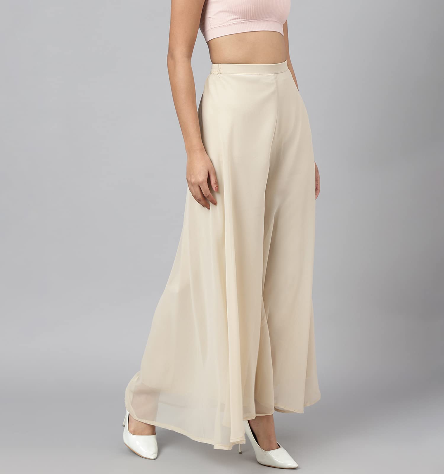 Home Product RATAN Women's Georgette Flared Freesize High Rise Sharara Palazzo Pant With Lining
