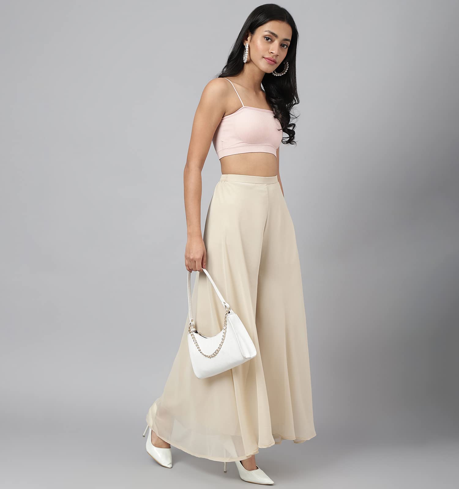 Be the first to review “RATAN Women’s Georgette Flared Freesize High Rise Sharara Palazzo Pant With Lining”