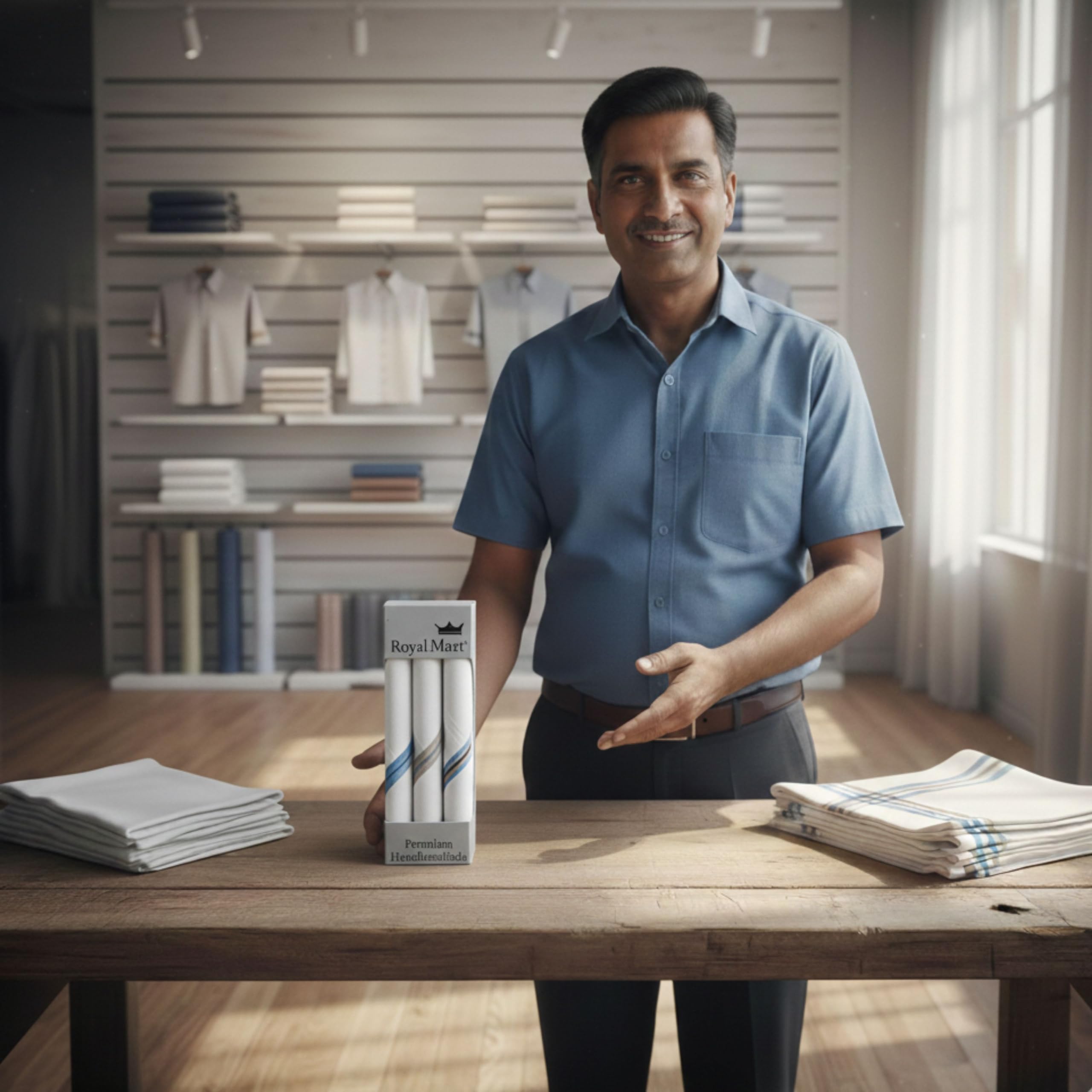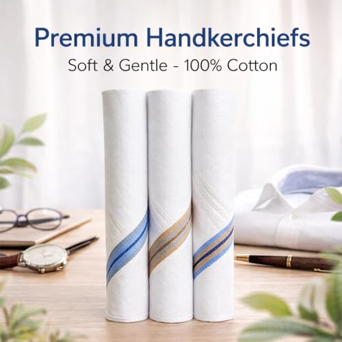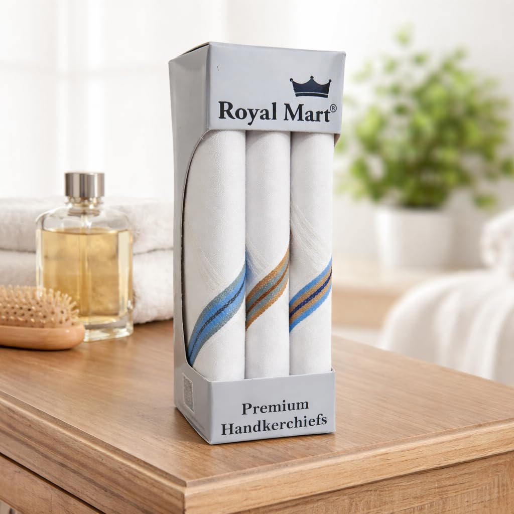 Home Product Royal Mart Cotton Handkerchief for Men’s– 15 In Full Face Cover | Soft, Skin-Friendly, Lightweight & Absorbent | Reusable Pocket Hanky for Daily Use (Pack of 3)