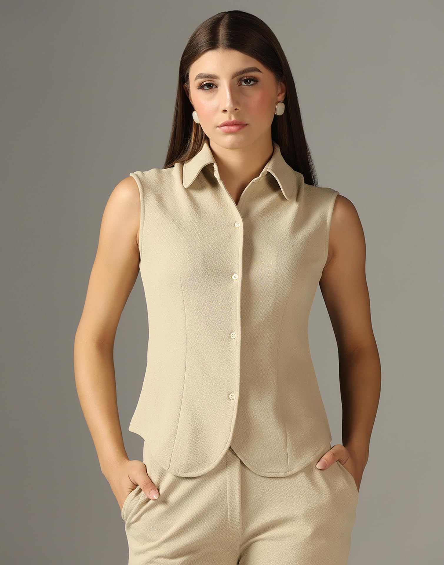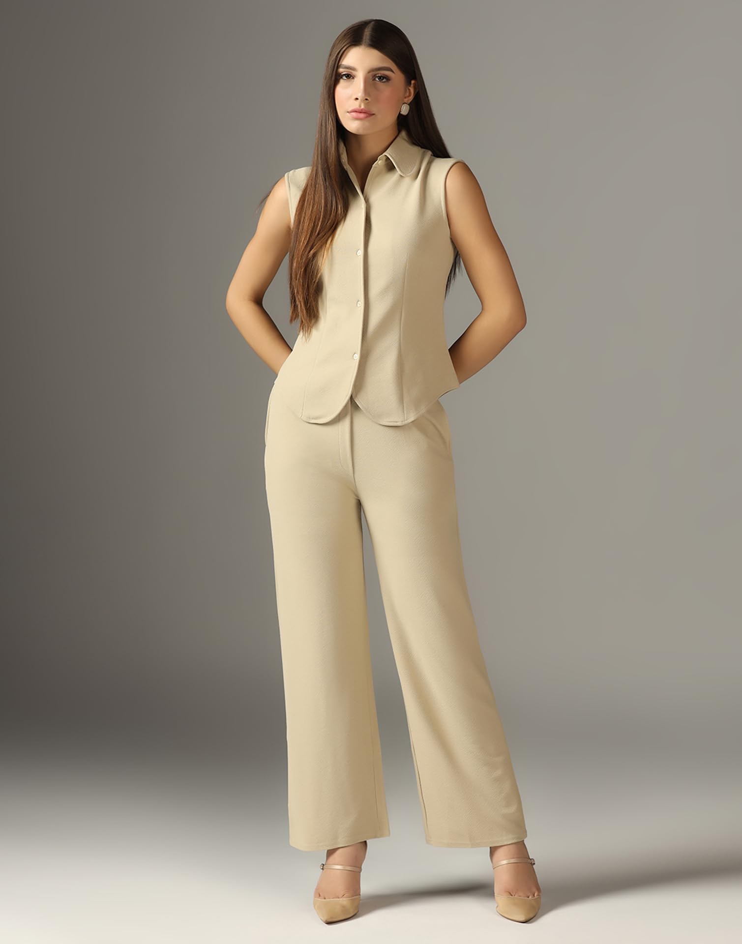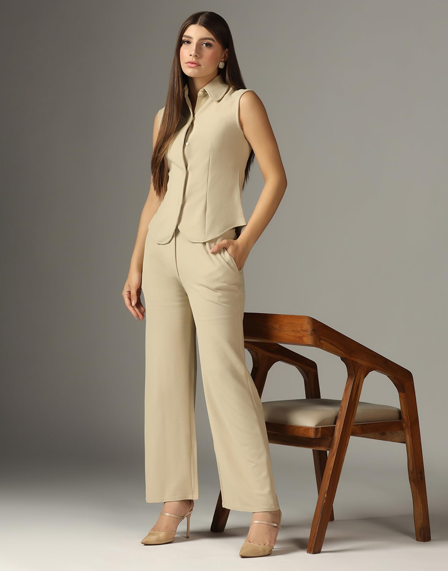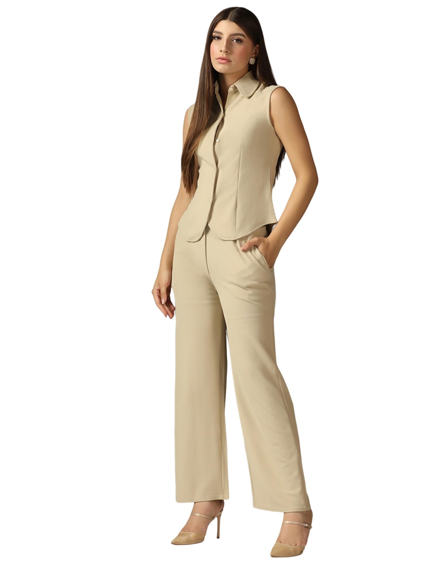 - Fabric : Lycra || color : Beige || pattern : Solid | crafted from soft, breathable material for all-day comfort in our latest design co-ord set for women