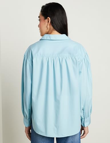 • STYLE DETAIL: A timeless oversized shirt featuring an open collar and long balloon sleeves