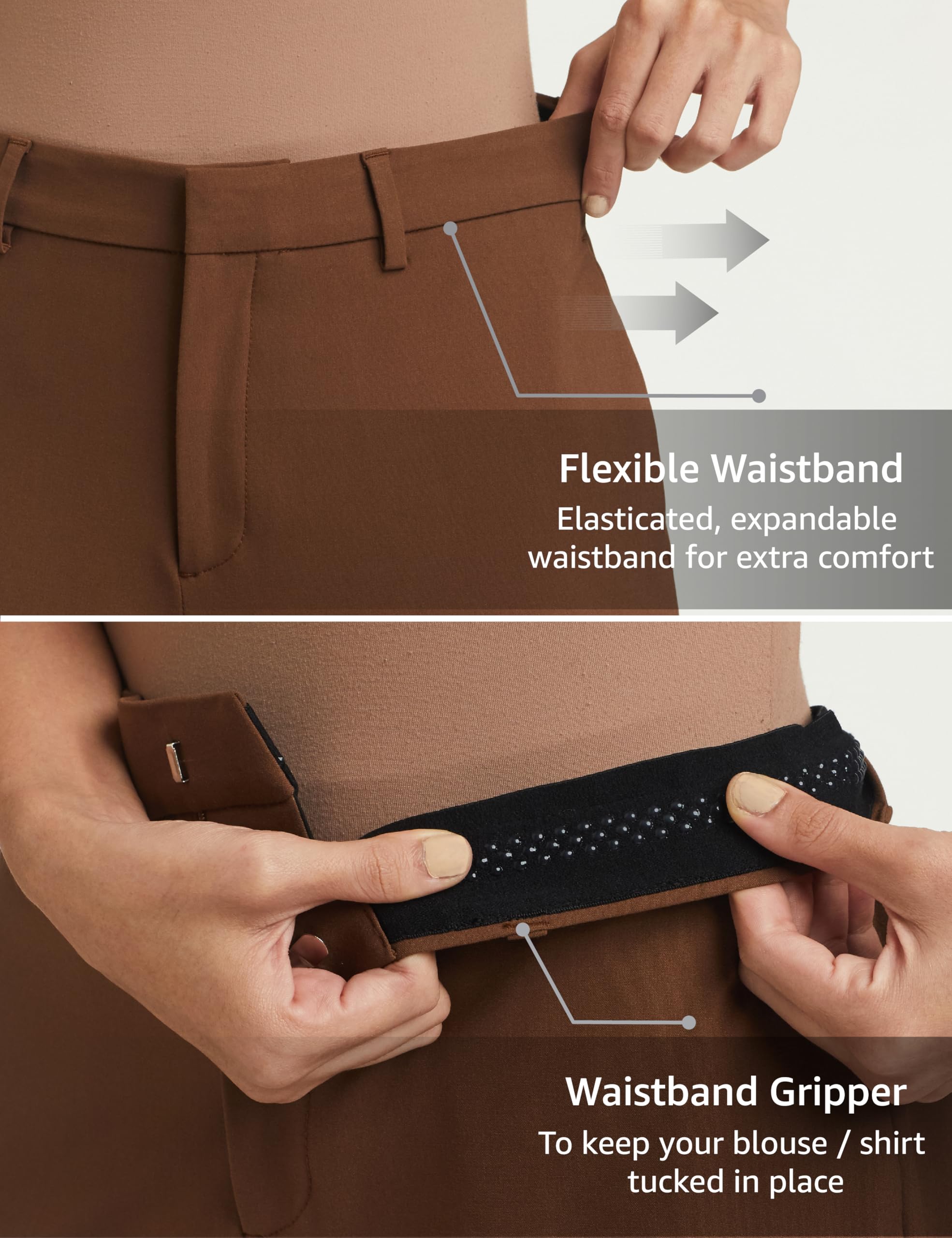 • WORKMANSHIP: Features a zip fly with hook-eye closure, flexible waistband, and built-in shirt gripper that ensures a neatly tucked-in shirt